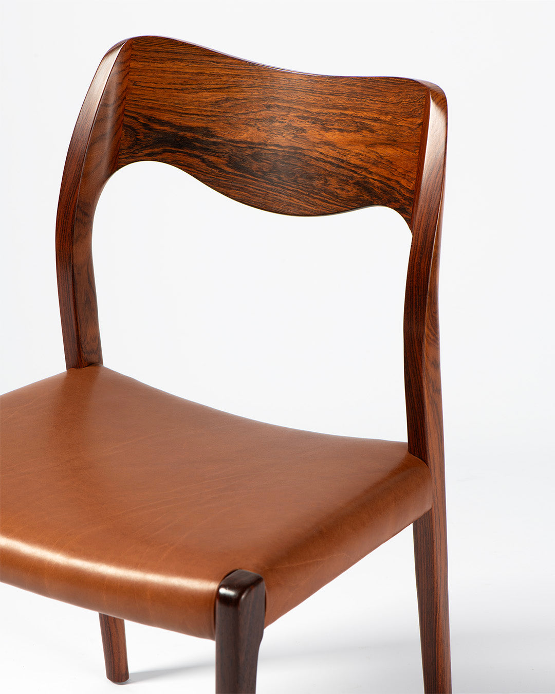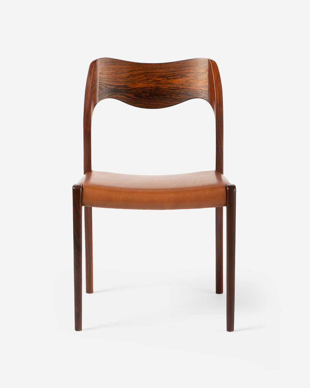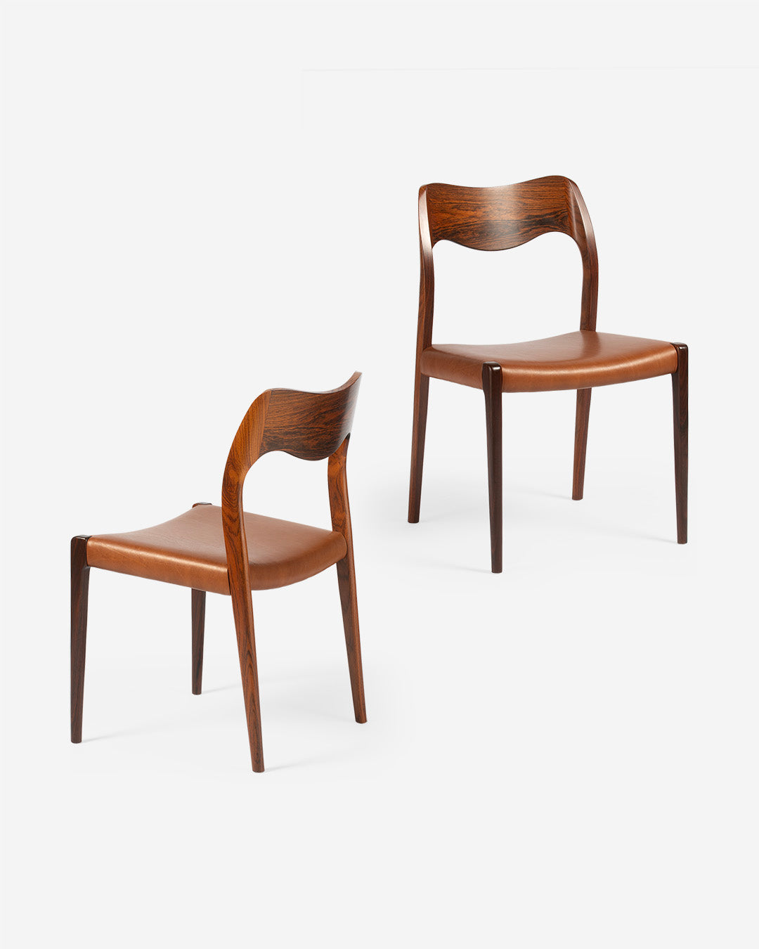 Niels Moller's Model 71 dining chair was one of his earliest and most expressive works, designed in 1951 in the early days of operating his own factory: J.L. Moller Mobelfabrik in Odense, Denmark. The Model 71 and its companion armchair the Model 55 evolved from Moller's collaborative design work early in his career with architect Arne Hovmand-Olsen.