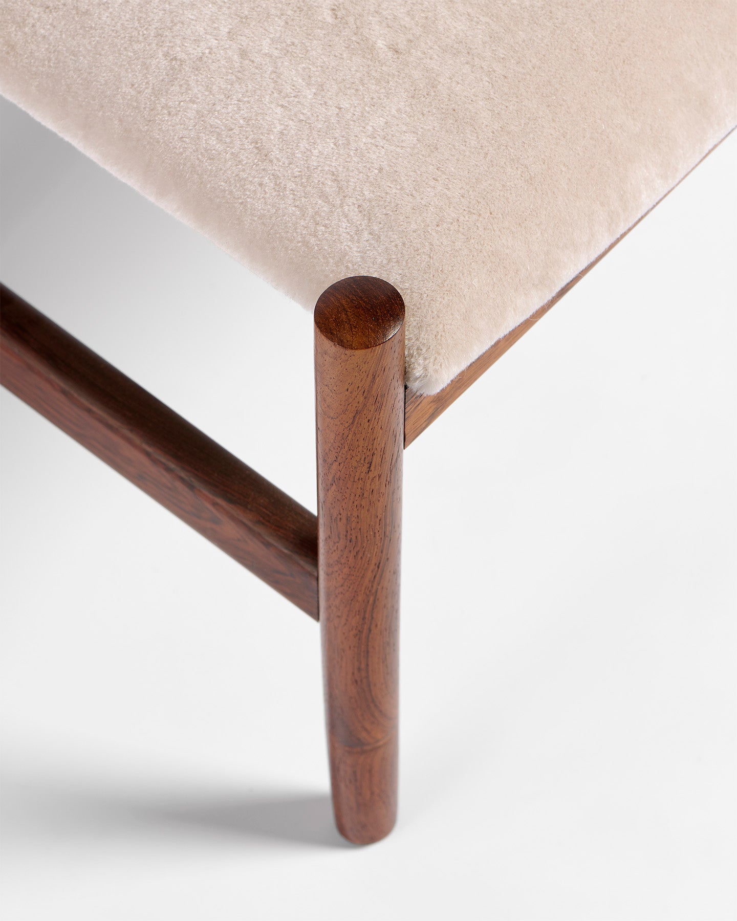 A pair of classic stools produced by Spottrup Mobler in The frames are made from exquisite rosewood that has been refinished by our team of restorers in London. The new padded seats have been upholstered in mohair velvet from Pierre Frey. Alternative upholstery options are available by request.